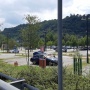 Un uomo è stato immortalato all'esterno del Centro Commerciale Belforte mentre si rilassa sul prato dei parcheggi
