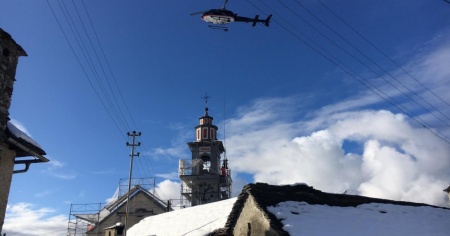 RASA – Le campane della chiesa di Sant’Anna a Rasa (Centovalli) tornano a casa. E lo fanno nel modo più spettacolare possibile. In elicottero. Come quando, a giugno, avevano preso il volo per Lucerna, in modo da essere restaurate. «Per noi è un momento storico – racconta Claudio Simoni, 67 anni, segretario della “parrocchia” –. Stiamo facendo un restyling generale dell’edificio. Ma le campane ci mancavano».