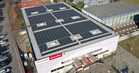BIASCA - A seguito del completo rifacimento del tetto della pista di ghiaccio BiascArena promosso dal Comune di Biasca, la Società elettrica sopracenerina SA (SES) e l’Azienda elettrica ticinese (AET) hanno realizzato una nuova installazione solare composta da 936 moduli, per una potenza totale di 304 kWp.