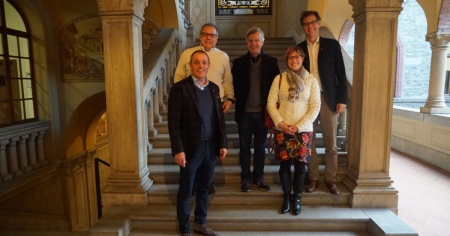 BELLINZONA - Il dottor Corrado Molo, storico direttore sanitario delle case anziani Mesolcina e Pedemonte, lascia dopo 27 anni. Il medico è stato accolto - lo scorso 3 febbraio - a Palazzo Civico dal Sindaco Mario Branda, dal Municipale Giorgio Soldini dal Segretario comunale Philippe Bernasconi e dal direttore delle case anziani Silvano Morisoli. «È stata l’occasione - precisa la Città in una nota - per ringraziarlo del prezioso contributo dato nella conduzione dei due istituti collaborando in modo fattivo e a stretto contatto con le diverse Direzioni che si sono susseguite, garantendo l’implementazione dei compiti richiesti nell’ottica del benessere dei residenti».