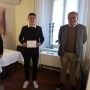 Il presidente di geosuisse sezione Ticino ing. Claudio Frapolli e il presidente degli Ingegneri Geometri Svizzeri (IGS) sezione Ticino ing. Riccardo Calastri hanno consegnato un premio di Fr. 500 al giovane apprendista.