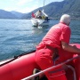 L'operazione di fermo e liberazione dall'anello si è svolta in maniera fulminea e direttamente in acqua. Infatti il bravo volontario posizionato sulla prua dell'imbarcazione si è tuffato direttamente nel lago, acciuffando al volo il bianco pennuto.