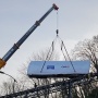 PARADISO - Nel prosieguo dei lavori di rinnovo, è arrivata a Paradiso anche la seconda nuova vettura della funicolare del San Salvatore, posata sul viadotto di Calprino.