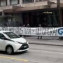 Le persone, infatti, reggono uno striscione recante la scritta «Vogliamo giustizia per gli operai» e il nome dell’azienda: il riferimento è alle presunte irregolarità evidenziate dai lavoratori, supportati dal sindacato, nel cantiere AlpTransit della galleria del Monte Ceneri.