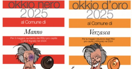 L'OKKIO nero è stato attribuito al Comune di Manno per il maggior aumento pro capite dei rifiuti solidi urbani (RSU) nel 2024 rispetto all'anno precedente. «L'aumento di ben 30.6 kg/abitante è notevole», precisa OKKIO facendo notare di aver ricevuto dal Comune l'informazione che l'aumento potrebbe essere dato dagli istituti scolastici (vedi SUPSI) così come dalle industrie e istituti commerciali presenti sul loro territorio. «Il dato sarà comunque utile per fare le necessarie verifiche».