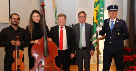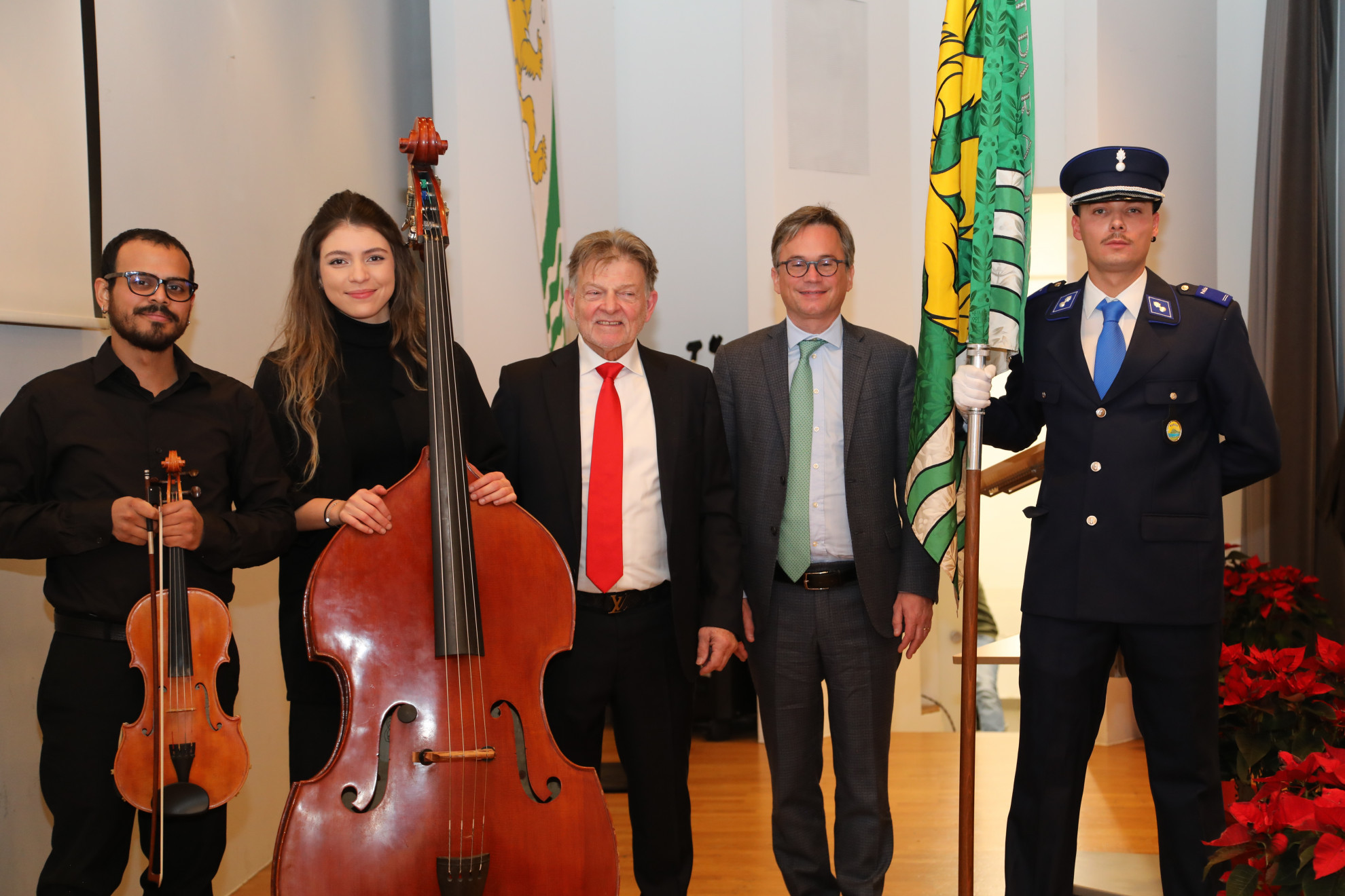 Comune di ParadisoDa sinistra verso destra, Pedro Gómez Briceño, Jesmar Valentina Rojas Rodríguez, il sindaco Ettore Vismara, il consigliere di Stato Christian Vitta.Vismara ha quindi affrontato temi di grande attualità, dal cambiamento climatico alla trasformazione tecnologica, esprimendo preoccupazione ma anche fiducia nei confronti dell’intelligenza artificiale, ricordando che «la sfida non è avere paura dell’IA, ma gestirne lo sviluppo in modo responsabile fissando regole chiare».