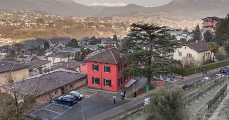 La vecchia casa comunale di Pazzallo si sviluppa su due livelli ed è stata riprogettata con una nuova organizzazione interna che prevede due sale polivalenti, una per piano, adatte ad accogliere attività sociali, culturali e ricreative.