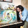 Il certificato sonoro di un quadro – Ma la vera novità è un'altra. Il pittore originario di Varese infatti si è lanciato in qualcosa di insolito. «Guardate questo dispositivo elettronico – ci indica –. Lo collego a un computer in cui ho installato un programma musicale specifico. E contemporaneamente anche alla tela e al pennello del quadro che sto dipingendo dal vivo. A poco a poco vengono emesse delle frequenze sonore. Ed è come se da un quadro nascesse una musica ben definita. Io immortalo queste frequenze, questa melodia. Producendo quello che chiamo "certificato sonoro" dell'opera».