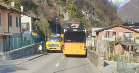 Un incrocio sfortunato, quello avvenuto questo mercoledì sera fra un camion e un autopostale che transitavano in Via Galbisio, sul territorio di Carasso.