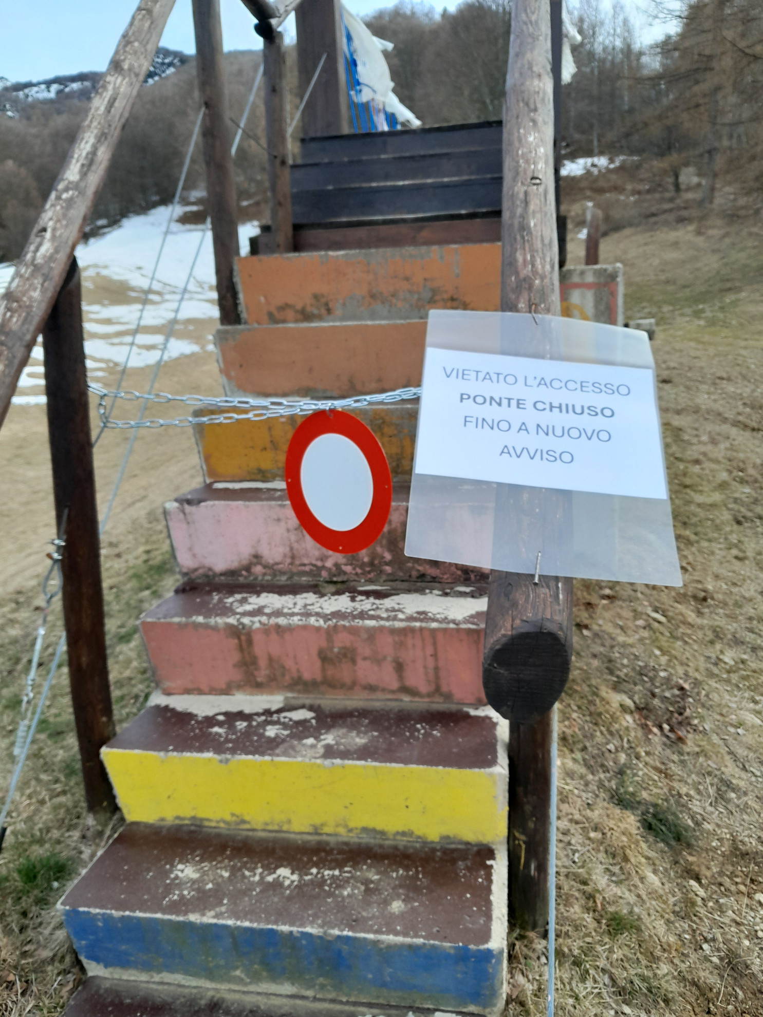 Mini ponte tibetano sbarrato nell'area escursioni: «Rischio infortuni»