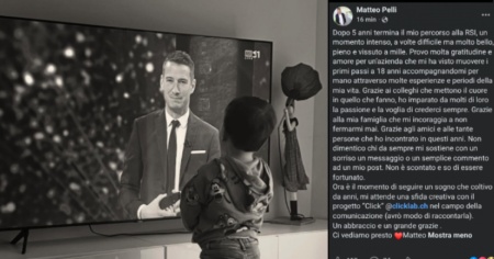 A postare l'annuncio sul suo profilo Facebook è stato l'ormai ex responsabile del Dipartimento Programmi e Immagine della Radiotelevisione svizzera: «Dopo 5 anni termina il mio percorso alla RSI, un momento intenso, a volte difficile, ma molto bello, pieno e vissuto a mille. Provo molta gratitudine e amore per un’azienda che mi ha visto muovere i primi passi a 18 anni, accompagnandomi per mano attraverso molte esperienze e periodi della mia vita».