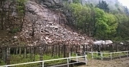 Una massa di rocce, fango e detriti si è staccata dalla montagna sovrastante ed è caduta vicinissima agli edifici. Circa venti persone sono state sfollate