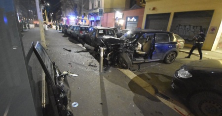 Auto ticinese fracassa 18 veicoli a Milano