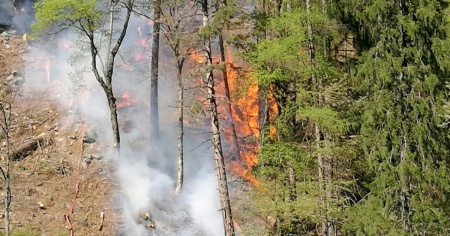 OSCO - Un violento incendio è divampato questo pomeriggio attorno alle 15.00 nei boschi di Osco, sopra Faido.