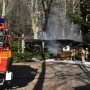 In fiamme la tettoia esterna di un grotto