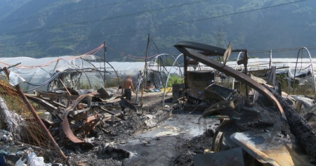 Quel che resta del capannone bruciato a Iragna