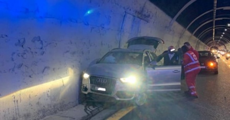 Il veicolo è andato a collidere contro la parete del tunnel, ma il conducente non avrebbe riportato lesioni