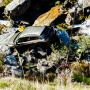 Veicolo distrutto, probabilmente per un freno a mano non tirato.