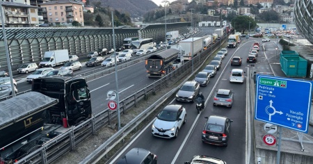 Situazione critica questa mattina sulla A2 con code intense verso nord e l'area di Chiasso fortemente congestionata.