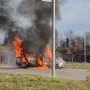 Una densa e alta nuvola di fumo, è un'auto che brucia