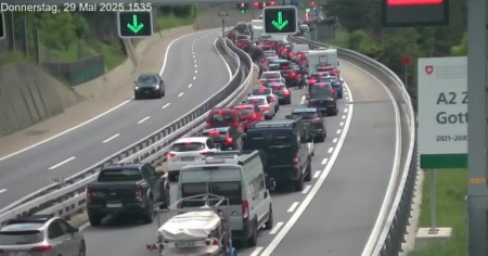 Meno traffico rispetto a questa mattina (ma ancora 9 km al portale nord del San Gottardo)