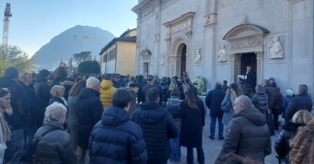Sono centinaia le persone presenti anche all'esterno, accorse per assistere alla cerimonia presieduta dal Vescovo Monsignor Alain De Raemy.