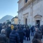 Il feretro arriva a bordo di un carro funebre bianco scortato dalla polizia. C'è un silenzio surreale sul sagrato.
