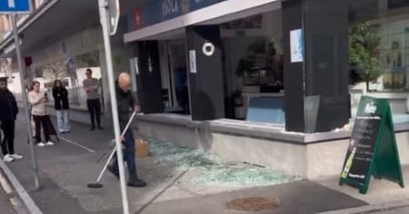 A raccogliere ciò che resta della vetrata della propria attività, come si evince dal video giunto in redazione, sono i dipendenti di Isola Greca, il take away di cucina greca al 7 di via ai Saleggi, a Locarno.