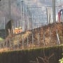 Fumo da un convoglio merci in transito